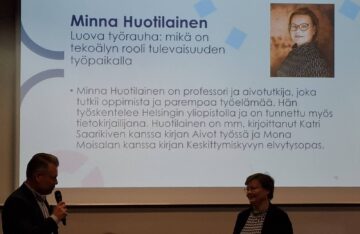 Oppimista ja parempaa työelämää tutkiva Minna Huotilainen työskentelee Helsingin yliopistolla ja on tunnettu myös tietokirjailijana. Tämänkertaisen puheen aihe ”Luova työrauha: mikä on tekoälyn rooli tulevaisuuden työpaikalla” puhutteli selvästikin Turku Tech Weekin osallistujia. Seminaari oli jo ennakkoon täyteen varattu ja lukuisat puhujalle esitetyt kysymykset osoittivat, että monet meistä tunnistavat paitsi sähellyksen, myös sen kuormittavuuden.